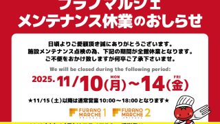 日頃よりご愛顧いただき誠にありがとうございます。施設メンテナンス点検のため、下記の期間が全館休業となります。ご不便をおかけいたしますが何卒ご了承くださいませ。 休業期間: 2025年 11月10日(月)~14日(金) な … 続きを読む 11/10-14 メンテナンス休業のお知らせ