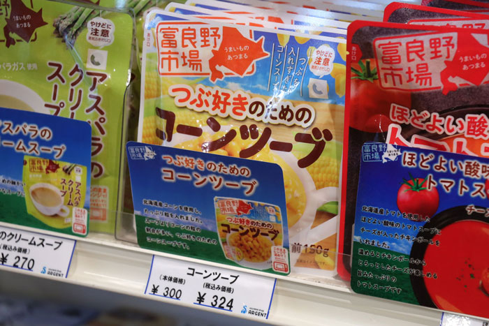 これまでも人気商品だったコーンスープ、その名もコーンツーブ(税込324円)の姉妹商品で、富良野市場から出ているレトルトシリーズです。