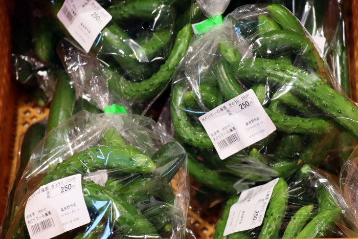 さて、店内の中心はじゃがいも、たまねぎ、かぼちゃなどが占めていますが、傍らには夏の名残を感じさせる野菜もまだ並んでおります。