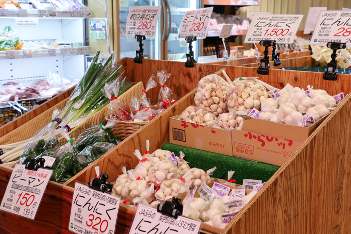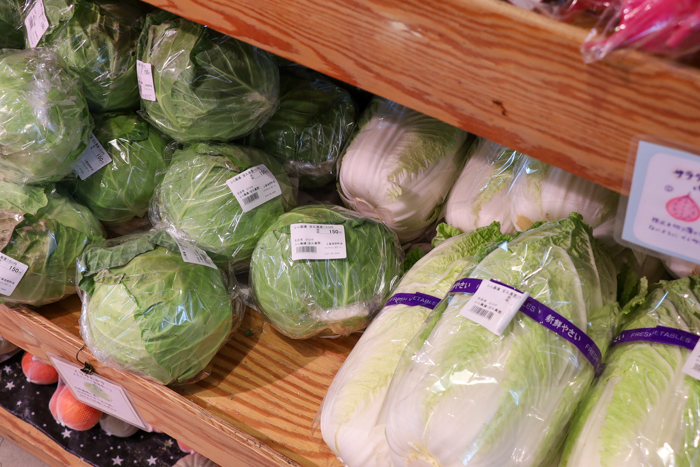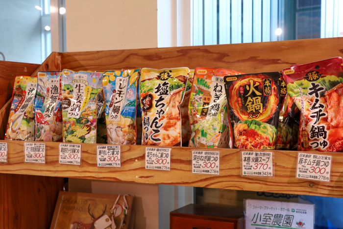 さて、店内には鍋の素がバリエーション豊富に並び、そこへ一緒に使いたい野菜もお買い求めいただけます。