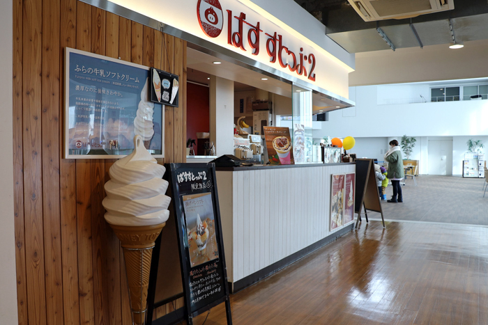 姉妹店のマルシェ1「ばすすとっぷ」には2色のソフトクリームが味わえる「ショコラモカサンデー」も登場しました!
