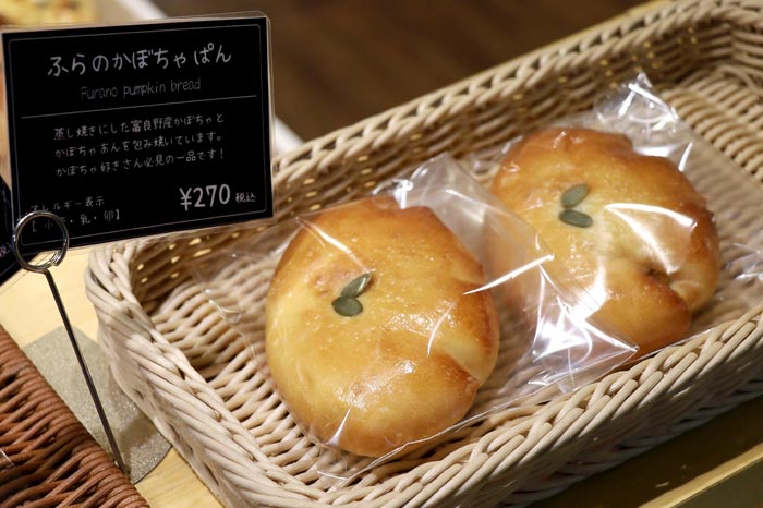 蒸し焼きにした富良野産かぼちゃとかぼちゃ餡を包んで焼きました。