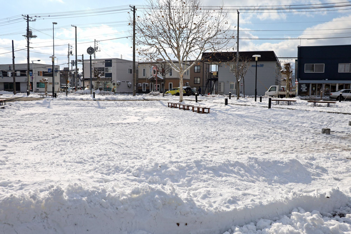 根雪になるかな?と覚悟していた道路の雪はずいぶん解けましたが、広場に敷き詰められた雪は解ける気配がありません。