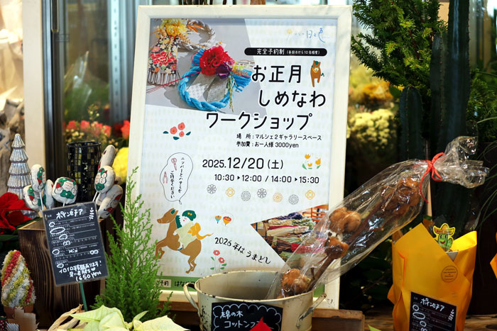 マルシェ2のお花屋さんはなや日々色にて今年もしめ飾りを作るワークショップが開催されます!