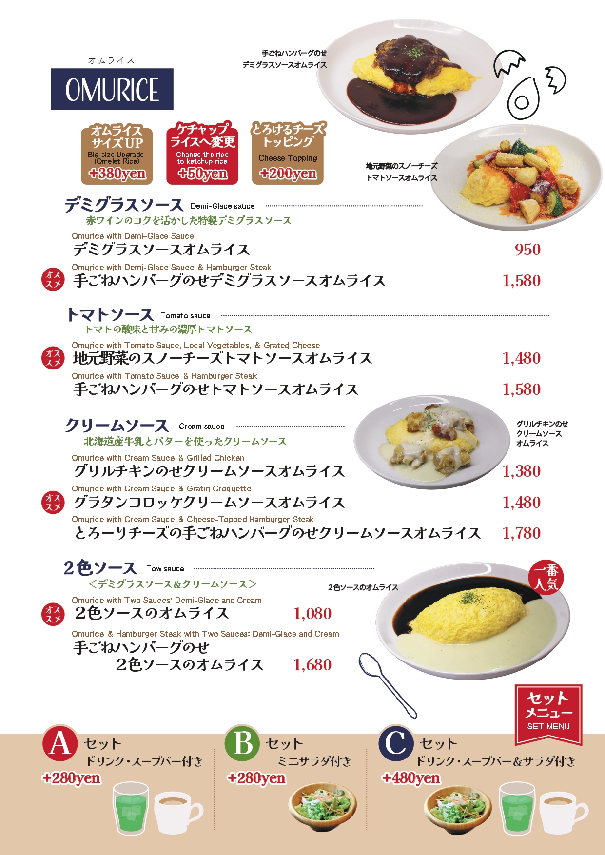などなど王道の洋食メニューが生まれ変わりました。