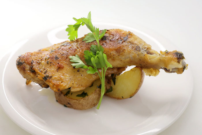 表面の皮はパリッと香ばしく、中はホロホロとほどけるような柔らかなもも肉。