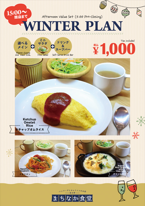 午後3時からのご提供となりますので、遅めのランチ、または、早めのお夕飯に!