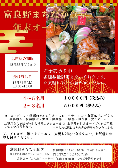 富良野まちなか食堂では只今オードブルのご予約も受付中です。