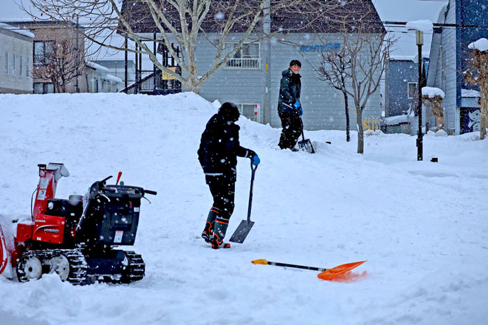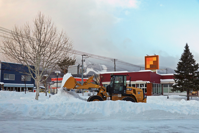 ショベルカーでマルシェ内の雪をかき集め、山を作ってもらいました。