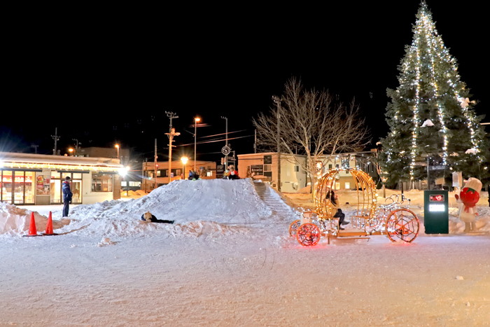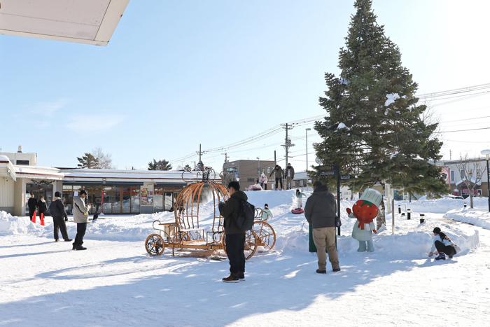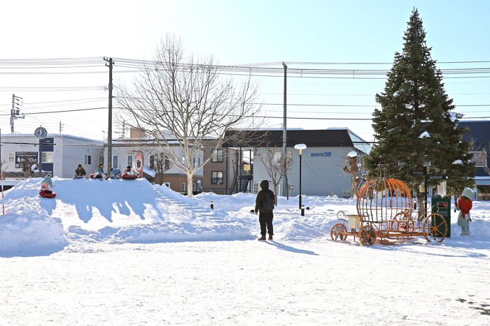 フラノマルシェの冬の風物詩、イベント広場の雪のすべりだいが出現しました!