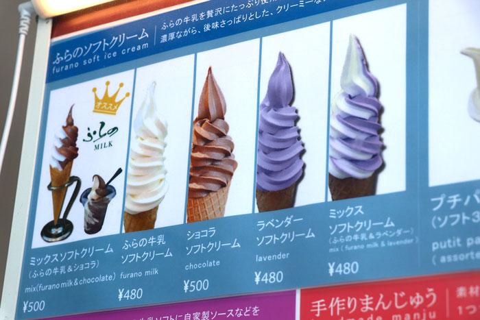 さらにこちらはそんなショコラソフトとラベンダーソフト、ふらの牛乳ソフトという3種類のソフトクリームを一度に食べられるプチパーティー(750円)。
