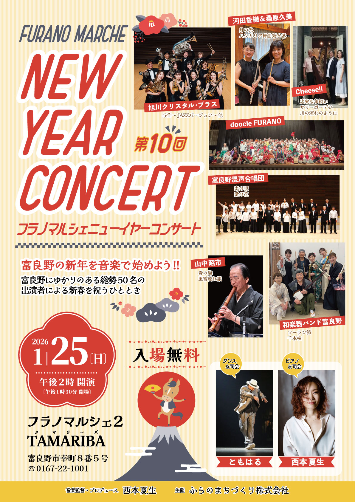 富良野出身、富良野在住、富良野が大好きな総勢約50人の出演者による音楽で新春を寿ぐ楽しいひとときが今年もやってきます!