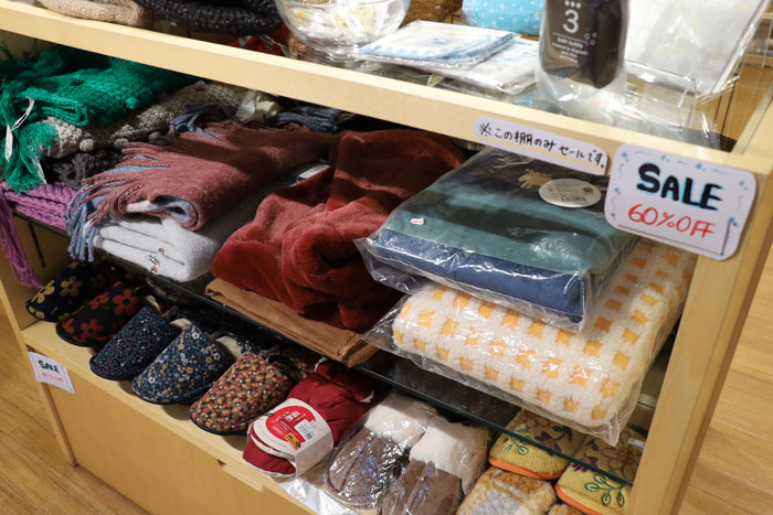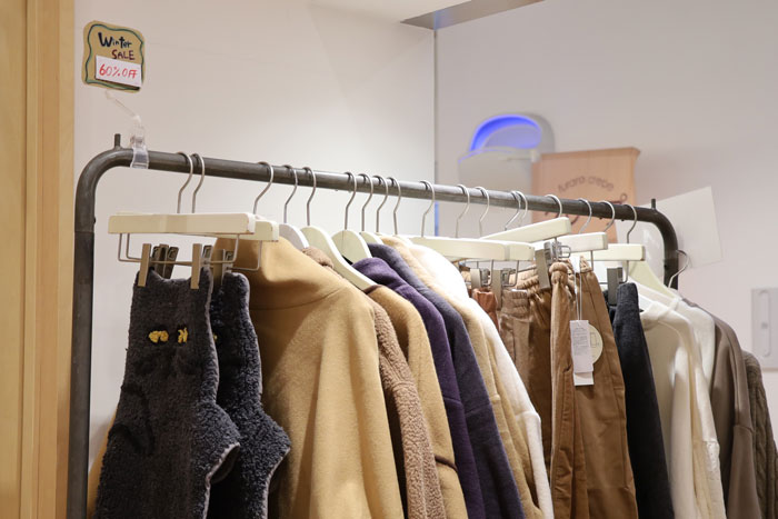 只今、冬物商品を中心に、一部商品が60%引きとなっております。