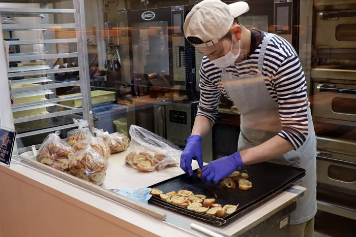 この他にも、お昼を前に続々とパンが焼き上がり、店頭が美味しそうなパンで賑わってゆきます。
