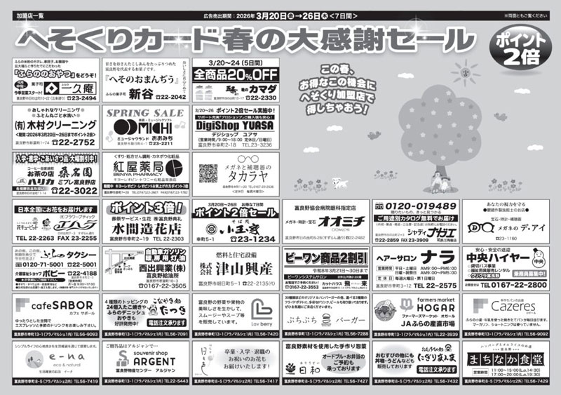 3月26日まで★へそくりカード春の大感謝セール開催中