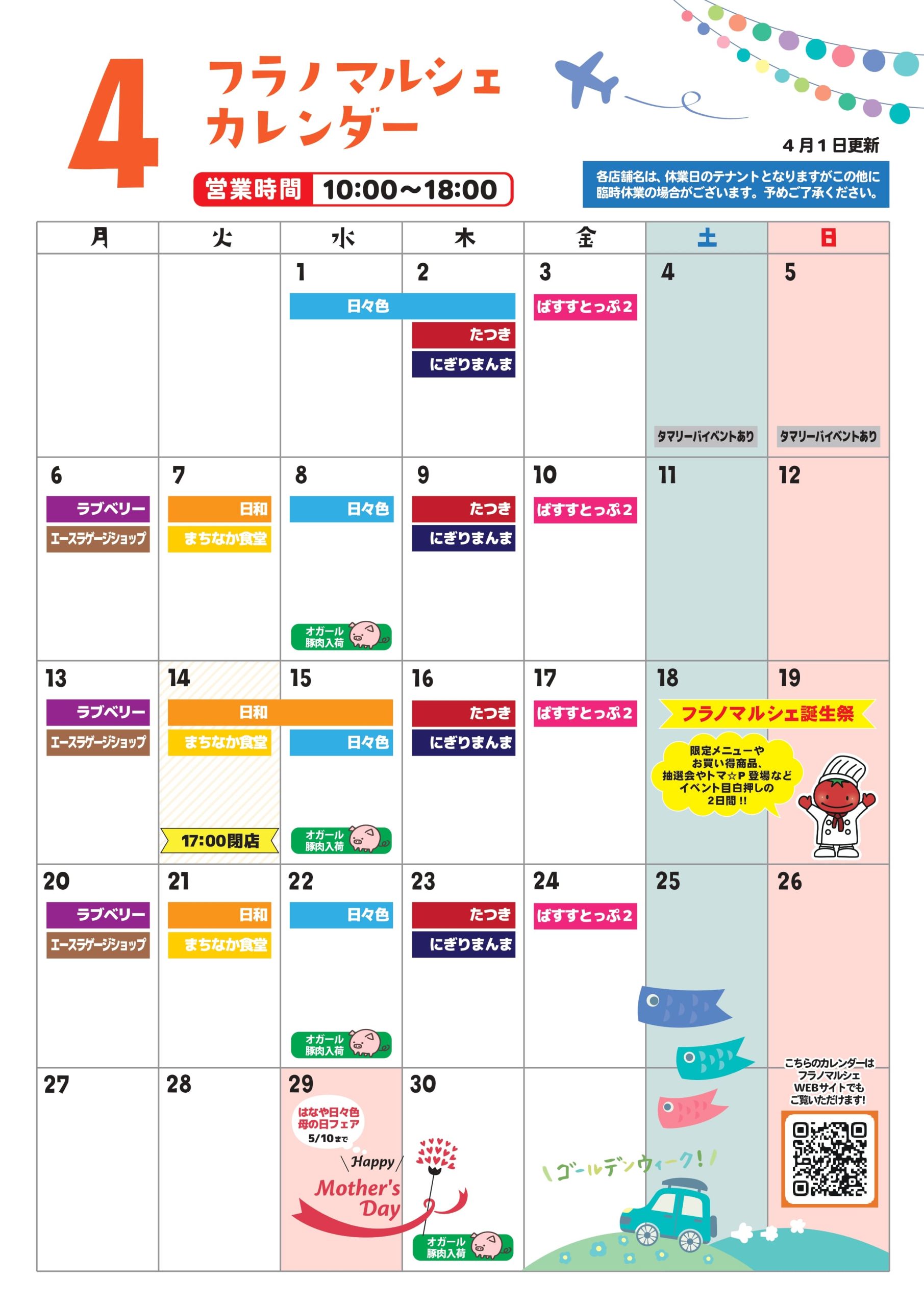 4月の営業カレンダー
