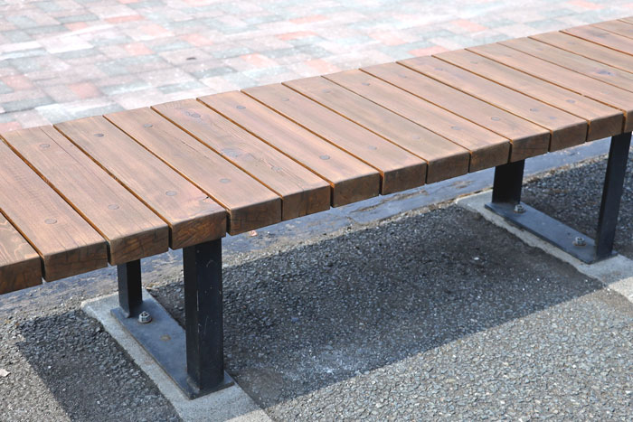 去年は元気なオレンジカラーだったベンチですが、今年は落ち着いた茶色に塗り替えていただきました!