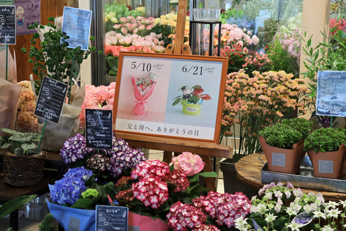 四季折々、イベントや季節感をいち早くお知らせしてくれるマルシェ2のお花屋さんはなや日々色。
