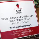 2026/01/04 / 最終更新日 : 2026/01/05 staff CAFE petit petit 《富良野いちごスイーツ専門店カフェプティプティ》閉店のお知らせ 日頃よりフラノマルシェをご愛顧いただきまして誠にありがとうございます。急なお知らせとなりますが、本日1月4日をもちましてフラノマルシェ2の富良野いちごスイーツ専門店カフェプティプティは閉店いたします。 2015年6月、フ […]