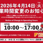 2026/04/11 / 最終更新日 : 2026/04/11 staff マルシェ 【お知らせ】4月14日は17:00閉店となります 日頃よりフラノマルシェをご利用いただき誠にありがとうございます。営業時間変更のお知らせです。 4月14日(火)の営業時間は10:00~17:00となります。閉店が、通常より1時間早くなっておりますので、ご来店の際はお気を […]
